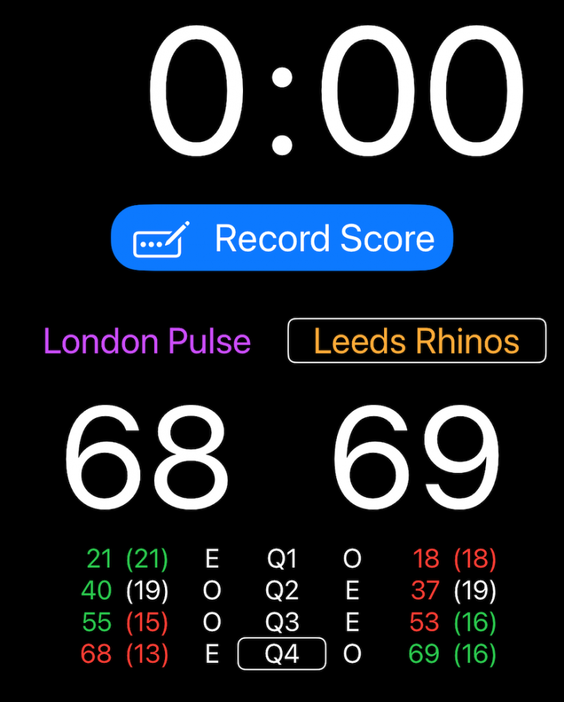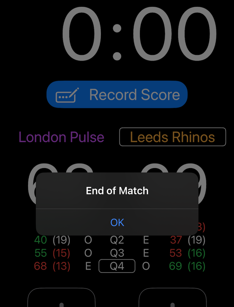 Once the final score is confirmed, press the “Record Score” button to store the score in the app.